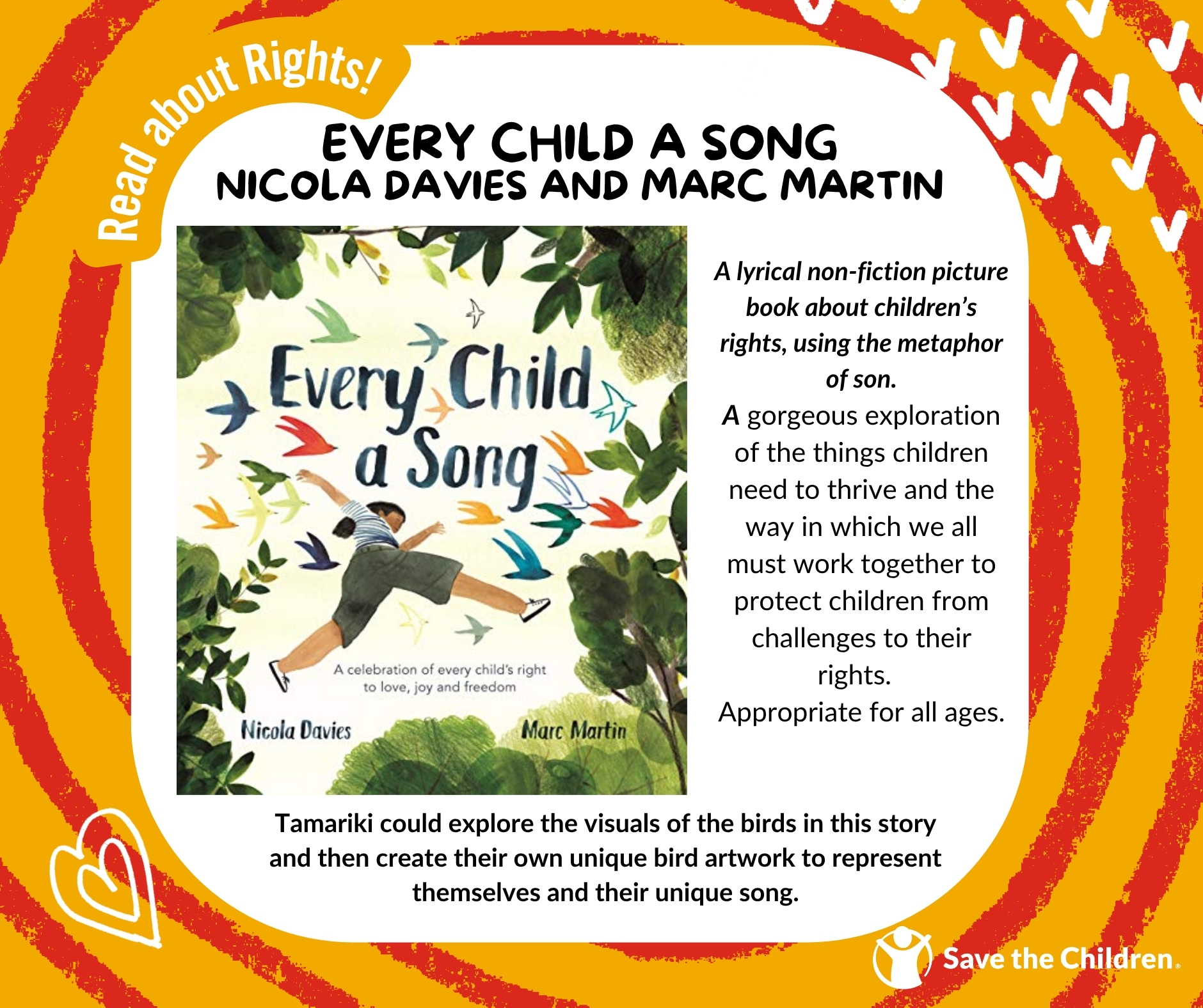 One of our recent favourites is the amazing Every Child a Song by Nicola Davies and Marc Martin - a beautifully illustrated picture book about the things children need to thrive and the way their rights must be protected.