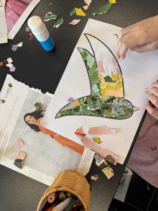- Collage materials (this could be scrap paper that you paint/draw on, or old recycled magazine pages like we used)
