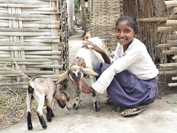 Six years later, thanks to the support of our monthly supporters, her mother raises cattle, pigs, and grows vegetables. Her monthly income has increased enough to pay for Anjali’s school fees, uniform, and stationery. Anjali is healthy, happy, and studying full time, and dreams of becoming a teacher.